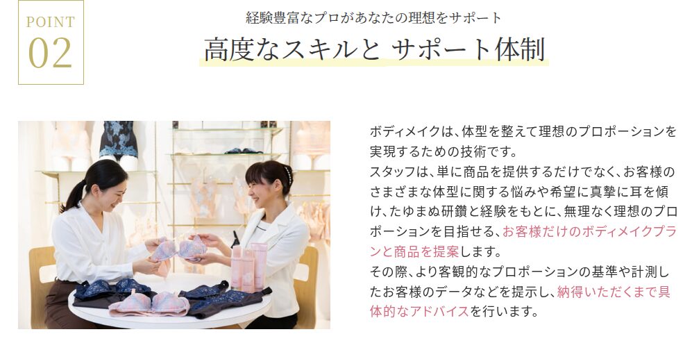 試着体験を通じて、自分に合った下着を見つけることができます。