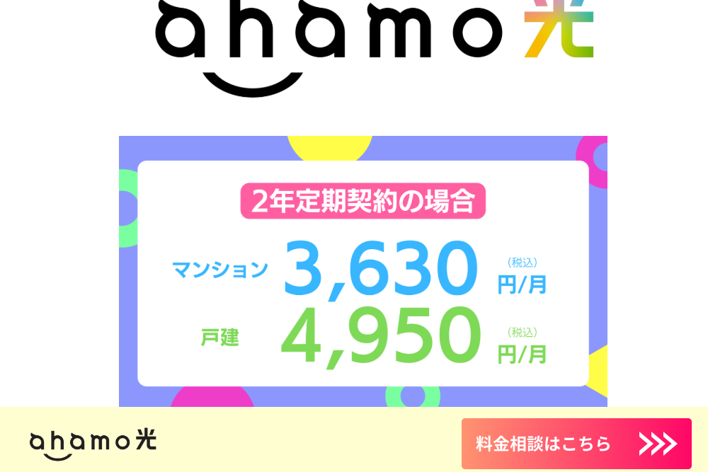 | ahamo光 | 1Gbps | 3,630円(マンション)<br>4,950円(戸建て) |