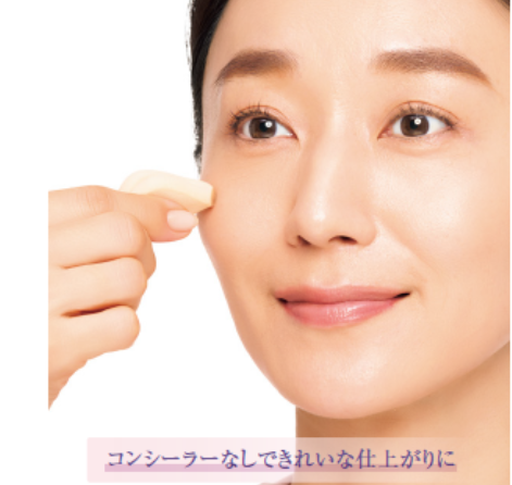 コンシーラーを重ねる手間がなくなるため、仕上がりは他の製品を使った「コンシーラー+ファンデ」の工程よりも薄く、自然になります。