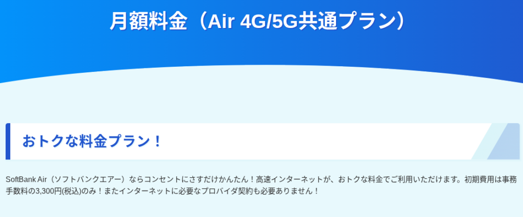 SoftBank Airの基本料金|初期費用はたった3300円!