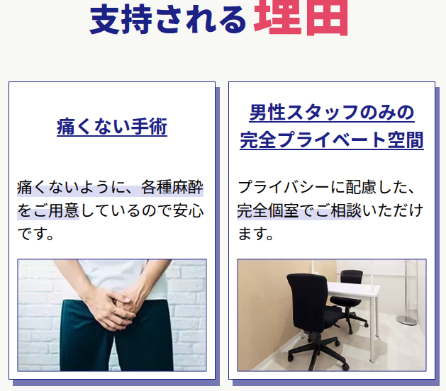 - 男性スタッフによるデリカシーのある対応が徹底されています。