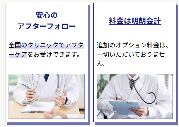 - 術後に不安な点があれば、アフターケアとして無料で相談できます。
