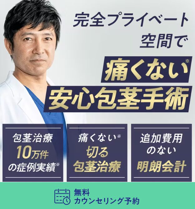 - 包茎治療は特定の年齢層に限定されず、20代~30代が中心ですが、シニア世代(50代以上)まで幅広い年齢層の方が通院しています。