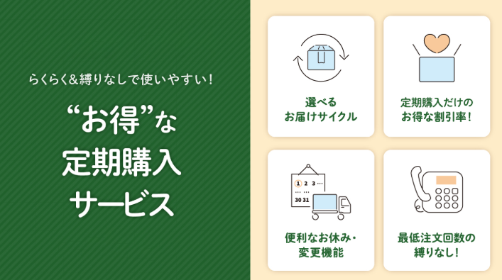 お試しセットのような感覚で定期便を始める方も多いです。 - いつでも休止・解約が可能