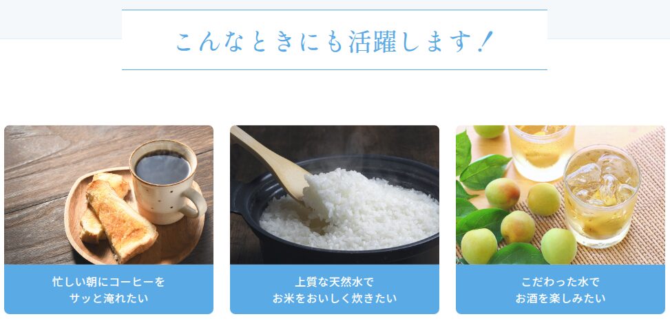 また、軟水特有の素材の旨味を引き出す力により、いつものお米やコーヒーが美味しくなる点も、生活の質を底上げする重要な要素です。