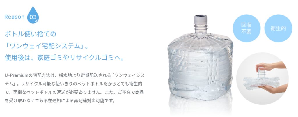 | お水の在庫管理 | 1セット(2本セット)での定期配送のため、消費ペースが遅いとお水が余ってしまうことがある。 | スマホアプリから数タップで配送スキップが可能です。 自分のペースで調整すれば無駄にはなりません。 |