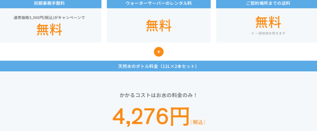 - 天然水ボトル料金(12L×2本セット):4,276円(税込)